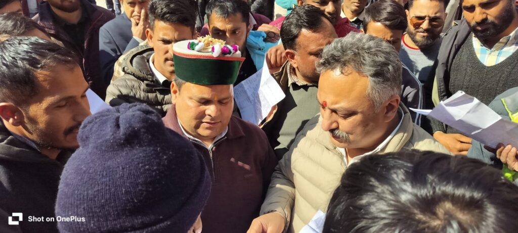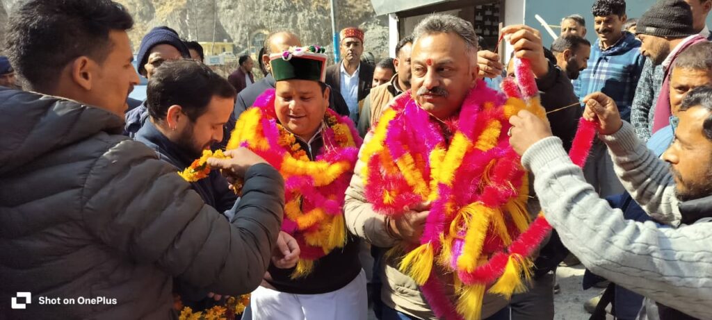 विधानसभा क्षेत्र भरमौर के एक दिवसीय दौरे पर पहुंचे हिमाचल प्रदेश के शिक्षा मंत्री रोहित ठाकुर का द्वार मैहला में स्थानीय लोगों और कांग्रेस कार्यकर्ताओं द्वारा भव्य स्वागत एवं अभिनंदन किया गया। इस अवसर पर क्षेत्र के वरिष्ठ कांग्रेसी नेताओं, समर्थकों तथा प्रबुद्ध नागरिकों ने बढ़-चढ़कर भाग लिया और मंत्री के समक्ष विभिन्न जनसमस्याएं प्रमुखता से उठाईं।दौरे के दौरान मैहला, बग्गा, बकानी, राख, सुनारा, चूड़ी, गहरा, लूणा, दुर्गेठी और भरमौर सहित कई पंचायतों के प्रतिनिधियों ने विशेष रूप से शिक्षा विभाग से जुड़े मुद्दों को मंत्री के समक्ष रखा। कई स्कूलों में महीनों से अध्यापकों की कमी का मामला प्रमुख रूप से उठाया गया।