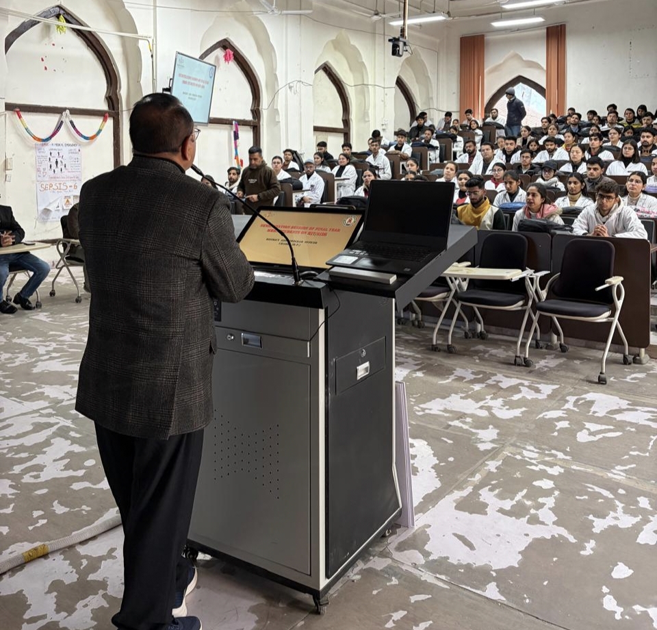 उन्होंने बताया कि समय पर जांच और सही उपचार से एचआईवी संक्रमित व्यक्ति एक सामान्य जीवन जी सकता है। इसके साथ ही उन्होंने एचआईवी एड्स एक्ट 2017 की जानकारी देते हुए बताया कि इस अधिनियम के तहत एचआईवी पीड़ितों को भेदभाव से सुरक्षा, गोपनीयता का अधिकार और निःशुल्क उपचार जैसी कई महत्वपूर्ण सुविधाएं प्रदान की जाती हैं।डॉ. भारद्वाज ने छात्रों से आग्रह किया कि वे भविष्य में चिकित्सक के रूप में समाज में एचआईवी को लेकर फैली भ्रांतियों को दूर करने में अहम भूमिका निभाएं और पीड़ितों के प्रति संवेदनशीलता व सहानुभूति रखें।इस अवसर पर जिला एड्स कार्यक्रम अधिकारी डॉ. हरित पूरी ने बताया कि एचआईवी से संबंधित किसी भी प्रकार की जानकारी, परामर्श या मार्गदर्शन के लिए भारत सरकार द्वारा जारी 1097 टोल फ्री हेल्पलाइन नंबर पर किसी भी समय संपर्क किया जा सकता है।