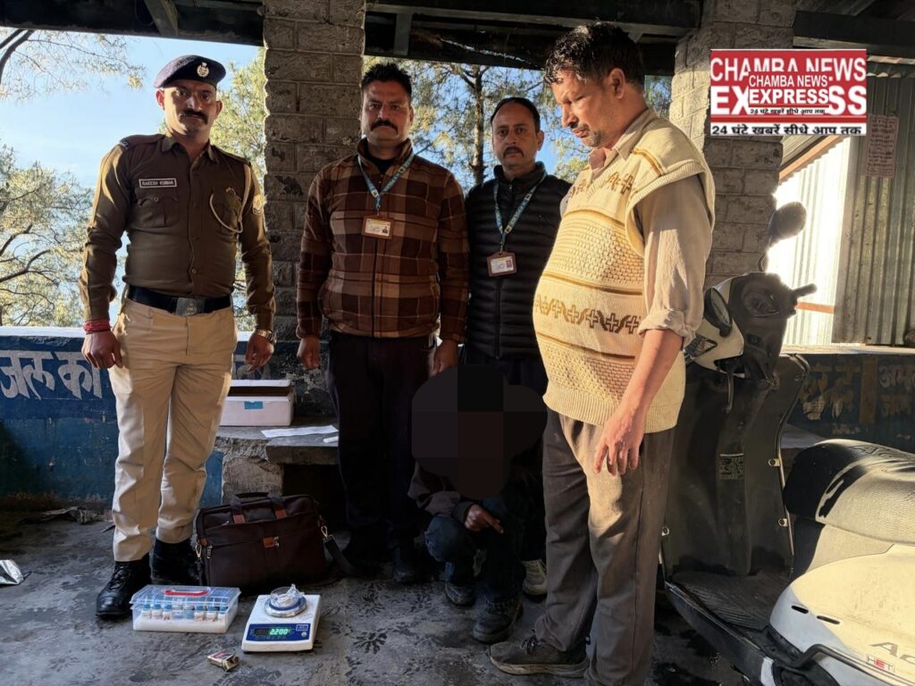 आरोपी की पहचान 21 वर्षीय हनी कुमार पुत्र बालकृष्ण, निवासी सरोल, तहसील व जिला चंबा के रूप में हुई है। पुलिस टीम ने मौके पर ही युवक को काबू कर लिया।इस संबंध में पुलिस थाना सदर में मादक पदार्थ अधिनियम के तहत मामला दर्ज करने की प्रक्रिया शुरू कर दी गई है। पुलिस द्वारा आगे की जांच भी जारी है, ताकि यह पता लगाया जा सके कि आरोपी किसी बड़े नेटवर्क से जुड़ा हुआ है या नहीं।इस पूरे मामले की पुष्टि पुलिस अधीक्षक चंबा विजय कुमार सकलानी ने की है।