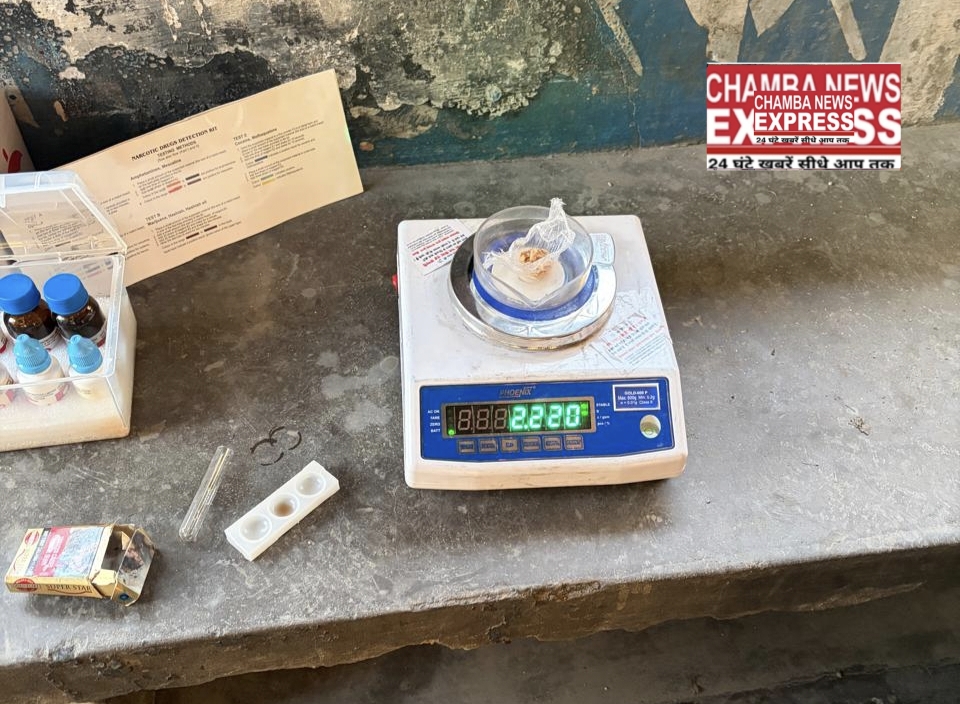 जिला चंबा में नशे के खिलाफ चलाए जा रहे अभियान के तहत पुलिस को एक और सफलता हाथ लगी है।आज बुधवार शाम करीब सवा छह बजे एसआईयू (स्पेशल इन्वेस्टिगेशन यूनिट) दल द्वारा गश्त के दौरान चंबा-पठानकोट मुख्य मार्ग एनएच-154A पर स्थित कांदू क्षेत्र में एक युवक से 2.22 ग्राम चिट्टा/हेरोइन बरामद की गई।पुलिस के अनुसार, गश्त के दौरान संदिग्ध गतिविधियों के आधार पर युवक को रोका गया और तलाशी लेने पर उसके कब्जे से उक्त मादक पदार्थ बरामद हुआ।