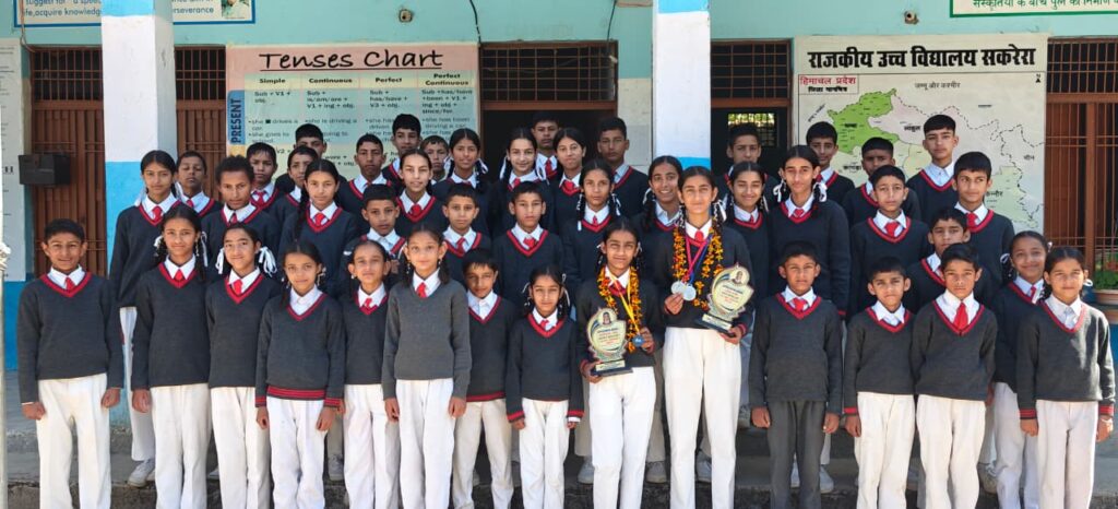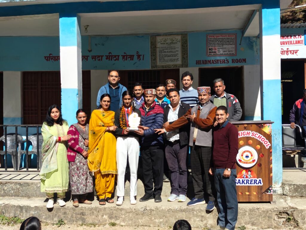 राजकीय उच्च विद्यालय सकरेरा में आज प्रातःकालीन सभा के दौरान जिला स्तरीय खेलकूद प्रतियोगिताओं में उत्कृष्ट प्रदर्शन करने वाली दो छात्राओं को स्मृति चिन्ह और पदक देकर सम्मानित किया गया। कार्यक्रम में छात्राओं के अभिभावकों, विद्यालय स्टाफ और स्कूल प्रबंधन समिति के सदस्यों ने भाग लिया।विद्यालय की कक्षा आठवीं की छात्रा कनिका ने अंडर-14 जिला स्तरीय खेलकूद प्रतियोगिता में 36 किलोग्राम भार वर्ग में कांस्य पदक प्राप्त किया, वहीं अंडर-19 एथलेटिक्स प्रतियोगिता में सिमरन देवी ने लंबी कूद में स्वर्ण पदक जीतकर न केवल विद्यालय बल्कि शिक्षक खंड बनीखेत का नाम भी रोशन किया।कार्यक्रम के दौरान पाठशाला प्रभारी वीरेंद्र ठाकुर ने दोनों छात्राओं की सफलता पर प्रसन्नता व्यक्त करते हुए कहा कि यह उपलब्धि बच्चों की लगन, परिश्रम और अनुशासन का परिणाम है। उन्होंने अभिभावकों के प्रोत्साहन और पीईटी राकेश कुमार के मार्गदर्शन की भी सराहना की और दोनों छात्राओं को राज्य स्तरीय प्रतियोगिता में उत्कृष्ट प्रदर्शन के लिए शुभकामनाएं दीं।
