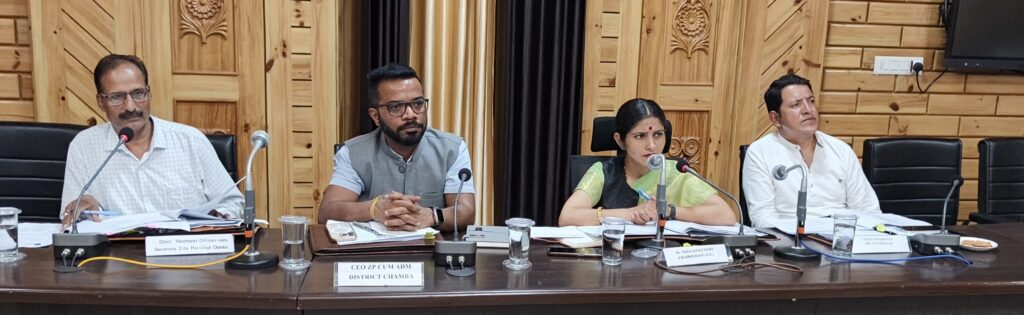 जिला परिषद अध्यक्ष डॉ. नीलम कुमारी की अध्यक्षता में जिला परिषद चंबा की त्रैमासिक बैठक आज बचत भवन में आयोजित की गई। बैठक में पिछली कार्यवाही की समीक्षा के साथ-साथ आगामी योजनाओं एवं विकास कार्यों पर विस्तृत विचार-विमर्श किया गया। इस दौरान कुल 76 मदों पर चर्चा हुई।बैठक को संबोधित करते हुए डॉ. नीलम कुमारी ने सभी विभागों को निर्देश दिए कि जनहित से जुड़े कार्यों को प्राथमिकता देते हुए तय समय सीमा में पूर्ण किया जाए। उन्होंने कहा कि लोगों की समस्याओं का शीघ्र समाधान सुनिश्चित करना प्रशासन की प्राथमिक जिम्मेदारी है। कुछ मदों में असंतोषजनक उत्तर मिलने पर उन्होंने संबंधित अधिकारियों को त्वरित समाधान हेतु उचित कार्रवाई करने के निर्देश भी दिए।