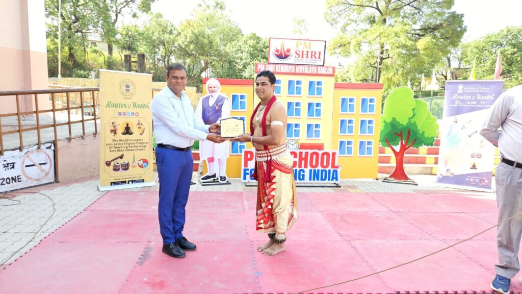 पीएम श्री केंद्रीय विद्यालय बकलोह में बुधवार को ‘रूट टू रूट’ कार्यक्रम के अंतर्गत एक विशेष सांस्कृतिक कार्यक्रम का आयोजन किया गया, जिसमें विद्यार्थियों को भारत की समृद्ध शास्त्रीय नृत्य परंपरा से परिचित कराया गया। इस अवसर पर प्रसिद्ध ओडिसी शास्त्रीय नृत्यकार दीनबंधु दलाई द्वारा ओडिसी शास्त्रीय नृत्य की सुंदर प्रस्तुति दी गई और विद्यार्थियों को इसकी ऐतिहासिकता, संरचना तथा भाव-भंगिमाओं की जानकारी प्रदान की गई।