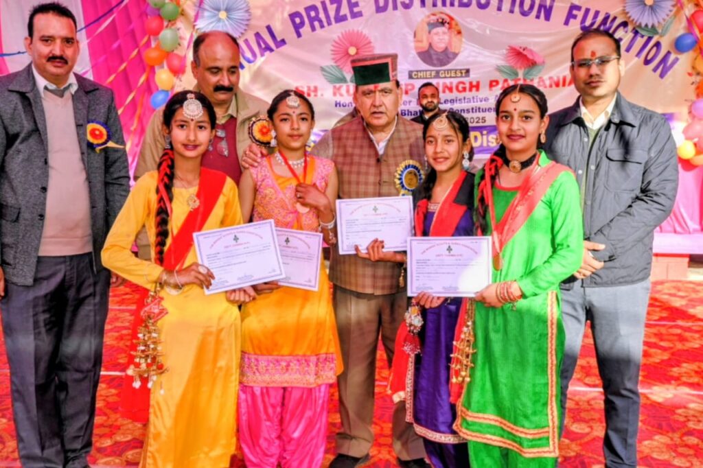 भटियात विधानसभा क्षेत्र के अंतर्गत राजकीय वरिष्ठ माध्यमिक पाठशाला गोला में आज वार्षिक पारितोषिक वितरण समारोह हर्षोल्लास के साथ आयोजित किया गया। इस अवसर पर विधानसभा अध्यक्ष कुलदीप सिंह पठानिया ने मुख्य अतिथि के रूप में शिरकत की। समारोह का शुभारंभ दीप प्रज्वलन के साथ किया गया, जिसके उपरांत विद्यालय प्रबंधन समिति एवं स्थानीय लोगों द्वारा विधानसभा अध्यक्ष का गर्मजोशी से स्वागत किया गया।अपने संबोधन में विधानसभा अध्यक्ष कुलदीप सिंह पठानिया ने विद्यालय के मेधावी विद्यार्थियों को शैक्षणिक, खेलकूद एवं सह-शैक्षणिक गतिविधियों में उत्कृष्ट प्रदर्शन के लिए पुरस्कार प्रदान कर सम्मानित किया। उन्होंने विद्यार्थियों की सराहना करते हुए कहा कि शिक्षा समाज और राष्ट्र के विकास की आधारशिला है तथा विद्यार्थी देश का उज्ज्वल भविष्य हैं। उन्होंने विद्यार्थियों को अनुशासन, परिश्रम और लक्ष्य के प्रति समर्पण के साथ आगे बढ़ने के लिए प्रेरित किया।विधानसभा अध्यक्ष ने कहा कि प्रदेश सरकार दुर्गम एवं पिछड़े क्षेत्रों में गुणवत्तापूर्ण शिक्षा उपलब्ध कराने के लिए प्रतिबद्ध है।