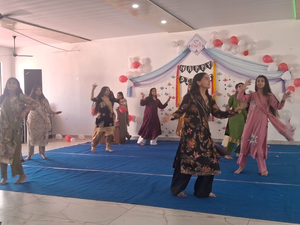 कार्यक्रम के दौरान रंगोली प्रतियोगिता, नृत्य प्रतियोगिता और दीपावली सजावट प्रतियोगिता का आयोजन किया गया, जिसमें नर्सिंग प्रशिक्षुओं ने बढ़-चढ़कर हिस्सा लिया। कॉलेज परिसर को रंग-बिरंगी सजावट और आकर्षक रंगोलियों से सजाया गया। प्रशिक्षुओं ने पहाड़ी, हिंदी, पंजाबी और राजस्थानी गीतों पर शानदार नृत्य प्रस्तुतियों से सभी का मन मोह लिया।कार्यक्रम के अंत में मिठाइयों का वितरण किया गया। चेयरमैन परवेज अली बट्ट ने घोषणा की कि प्रतियोगिताओं के विजेताओं को कॉलेज के वार्षिक समारोह में पुरस्कृत किया जाएगा।