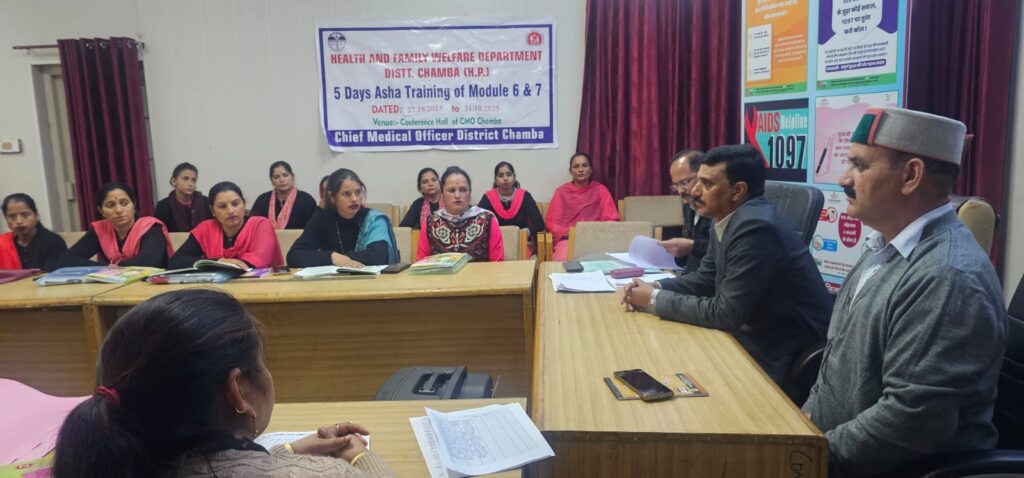 मुख्य चिकित्सा अधिकारी चंबा डॉ. विपिन ठाकुर ने आज आशा कार्यकर्ताओं के लिए आयोजित पांच दिवसीय प्रशिक्षण कार्यक्रम के समापन अवसर पर प्रशिक्षुओं को संबोधित किया। यह प्रशिक्षण मॉड्यूल 6 और 7 के तहत आयोजित किया गया था, जो 27 अक्तूबर से आरंभ हुआ था। इस कार्यक्रम में स्वास्थ्य खंड समोट, पुखरी, चूड़ी, भरमौर और पांगी से आई नव-नियुक्त आशा कार्यकर्ताओं ने भाग लिया।डॉ. ठाकुर ने बताया कि इस प्रशिक्षण का मुख्य उद्देश्य आशा कार्यकर्ताओं को मातृ एवं शिशु स्वास्थ्य संबंधी जानकारी और कौशल प्रदान करना था, ताकि वे अपने-अपने क्षेत्रों में गर्भवती महिलाओं और नवजात शिशुओं के स्वास्थ्य की बेहतर देखभाल कर सकें।