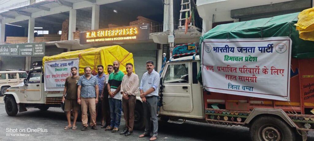 भारतीय जनता पार्टी ने चंबा से मंडी आपदा प्रभावितों के लिए भेजी राहत सामग्री, डेढ़ सौ परिवारों को मिलेगा लाभ
