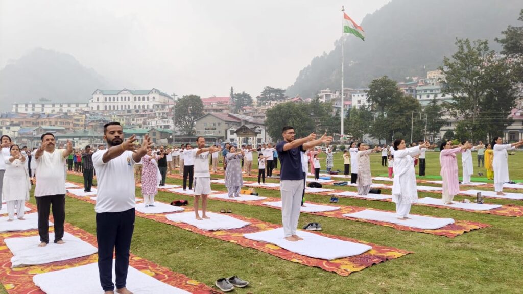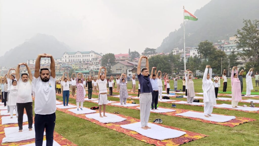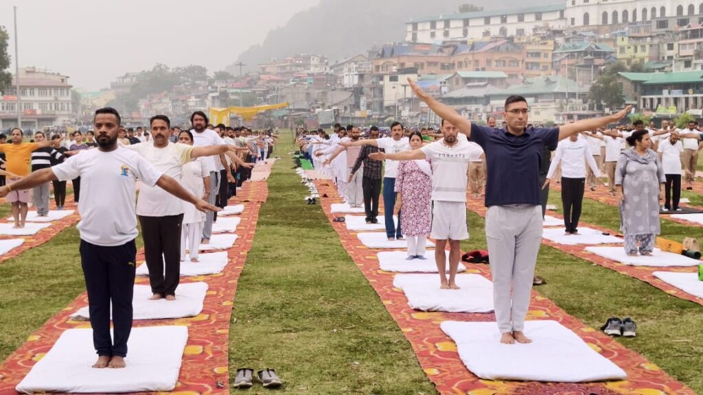 चंबा के ऐतिहासिक चौगान मैदान में 11वें अंतर्राष्ट्रीय योग दिवस के उपलक्ष्य में जिला स्तरीय योग शिविर का आयोजन आयुष विभाग के सौजन्य से किया गया। इस अवसर पर उपायुक्त चंबा मुकेश रेपसवाल ने बतौर मुख्य अतिथि भाग लिया। योग दिवस की थीम “एक पृथ्वी और एक स्वास्थ्य के लिए योग” रही।शिविर का शुभारंभ उपायुक्त द्वारा दीप प्रज्वलन कर किया गया। उन्होंने अपने संबोधन में सभी को अंतर्राष्ट्रीय योग दिवस की शुभकामनाएं दीं और कहा कि योग भारतीय सांस्कृतिक धरोहर का अभिन्न हिस्सा है।