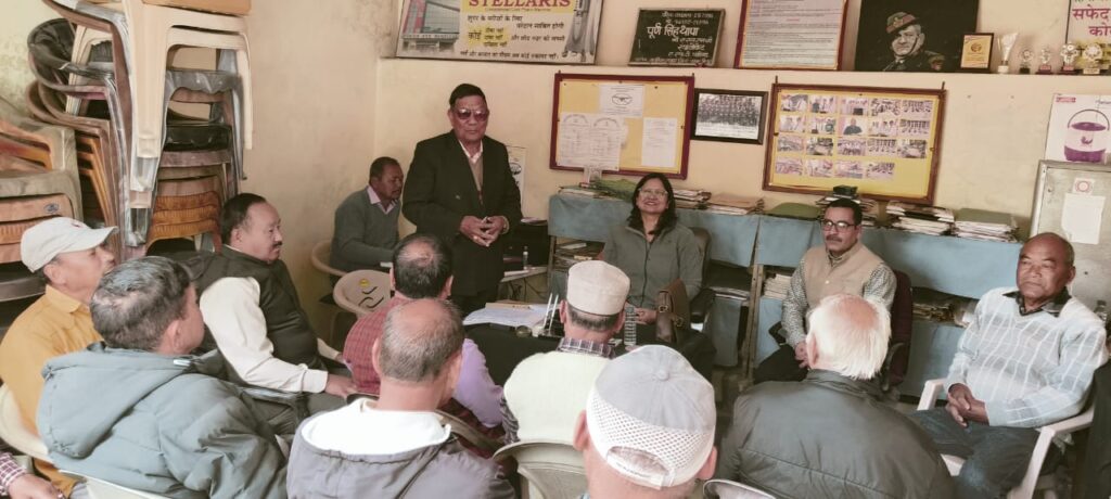 ककीरा स्थित पूर्व सैनिक लीग कार्यालय में डिप्टी डायरेक्टर, जिला सैनिक बोर्ड चंबा कैप्टन अनुमेहा परासर ने औचक निरीक्षण किया। इस दौरान लीग के अध्यक्ष कैप्टन पूर्ण सिंह थापा ने कार्यालय में उपस्थित पूर्व सैनिकों एवं वीर नारियों का परिचय डिप्टी डायरेक्टर से करवाया।निरीक्षण के दौरान कैप्टन अनुमेहा परासर ने सरकार द्वारा पूर्व सैनिकों और उनके परिवारों की भलाई के लिए चलाई जा रही विभिन्न कल्याणकारी योजनाओं की जानकारी साझा की। उन्होंने बताया कि पूर्व सैनिकों के अपंग बच्चों के लिए सरकार द्वारा पेंशन का प्रावधान किया गया है। इसके अलावा, विधवा और तलाकशुदा बेटियों को भी माता-पिता की मृत्यु के बाद पेंशन देने का प्रावधान है।इस अवसर पर लीग के अध्यक्ष कैप्टन पूर्ण सिंह थापा के अलावा कैप्टन किशन सिंह गुरुंग, ऑनरी लेफ्टिनेंट सुंदर सिंह गुरुंग, सूबेदार क्लर्क सुरिंदर सिंह गुरुंग, कैप्टन कमल कुमार थापा, कैप्टन राजीव गुरुंग सहित लगभग 30 पूर्व सैनिकों और वीर नारियों ने भाग लिया।बैठक के अंत में सभी उपस्थित अतिथियों और पूर्व सैनिकों के लिए लीग की ओर से जलपान की विशेष व्यवस्था की गई थी। सभी मेहमानों को सम्मानपूर्वक जलपान कराया गया।डिप्टी डायरेक्टर ने पूर्व सैनिकों की समस्याओं को भी सुना और आवश्यक समाधान का आश्वासन दिया। इस औचक निरीक्षण के दौरान पूर्व सैनिकों को उनकी पेंशन, चिकित्सा सुविधा, रोजगार और अन्य सरकारी योजनाओं से जुड़ी महत्वपूर्ण जानकारी प्रदान की गई।