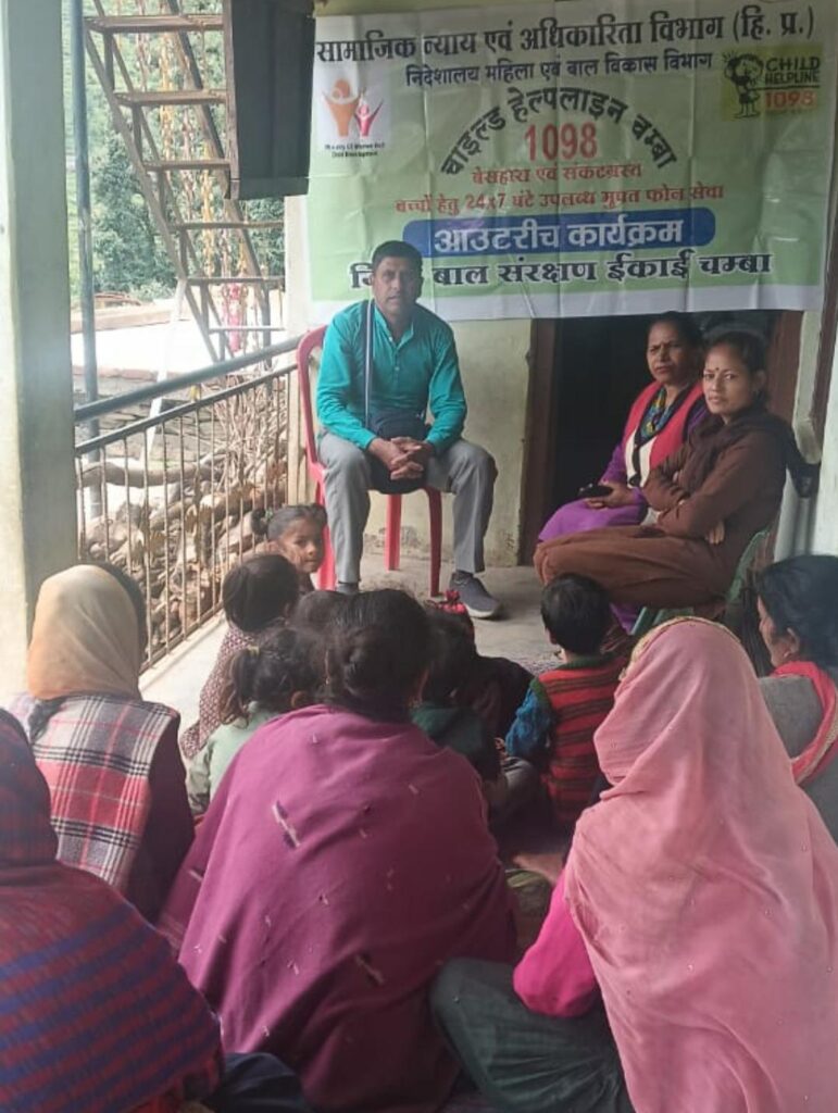 चाइल्ड हेल्पलाइन चंबा की ओर से भलोठ पंचायत घघरोता (सिल्लाघ्राट) स्थित आंगनवाड़ी केंद्र में एक महत्वपूर्ण आउटरीच कार्यक्रम का आयोजन किया गया। कार्यक्रम का उद्देश्य ग्रामीण समुदाय को बच्चों के अधिकारों, सुरक्षा और कानूनों के प्रति जागरूक करना था।
