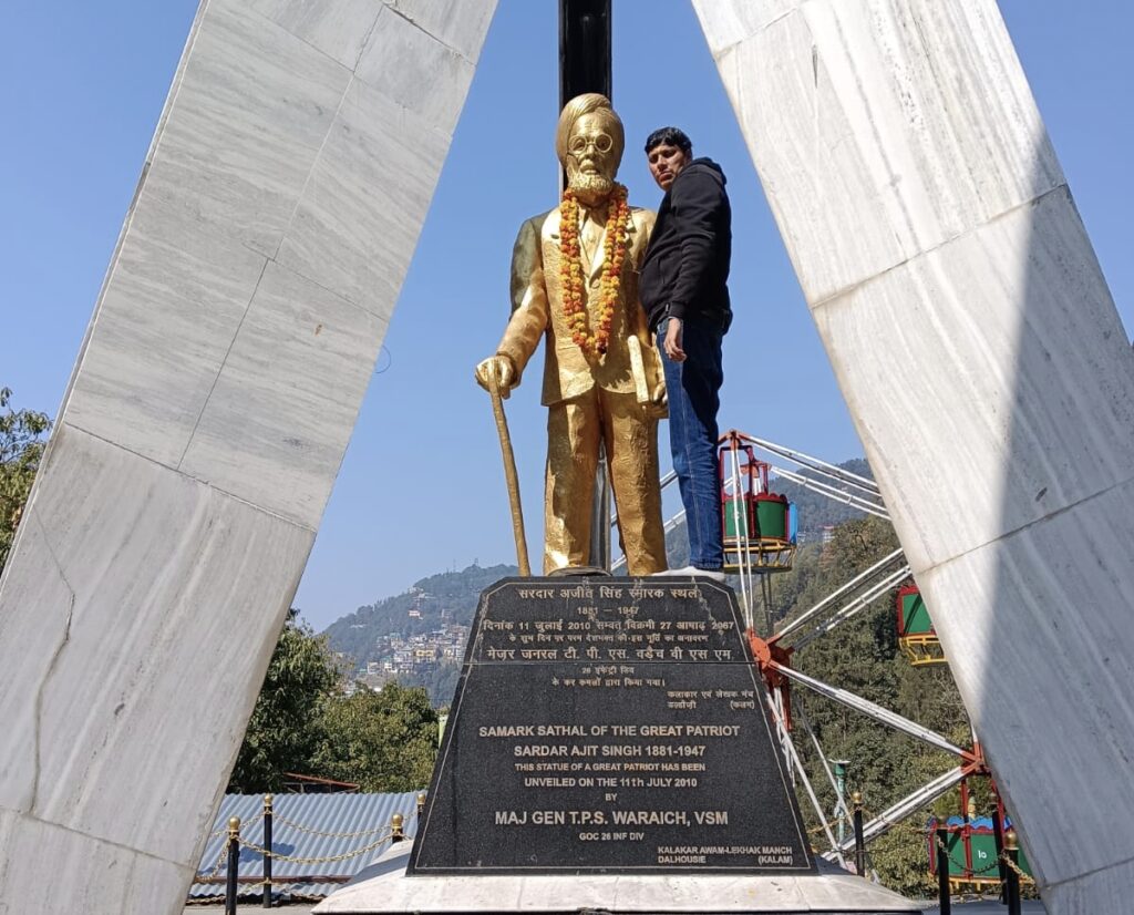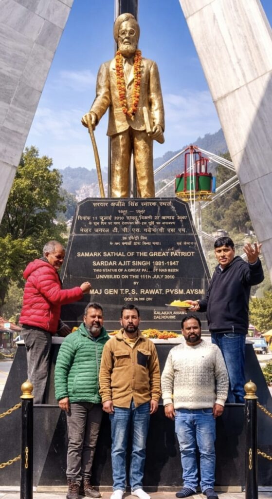शहीद-ए-आज़म भगत सिंह के चाचा एवं प्रखर क्रांतिकारी सरदार अजीत सिंह की जयंती के अवसर पर डलहौजी स्थित पंचपुला में उनके समाधि स्थल पर श्रद्धांजलि कार्यक्रम आयोजित किया गया। कार्यक्रम का आयोजन देशभक्त सरकार अजीत सिंह यादगार सभा डलहौजी की ओर से किया गया, जिसमें सभा के सदस्य धीरज गुप्ता सहित अन्य सदस्यों और पर्यटकों ने भाग लिया।इस अवसर पर सरदार अजीत सिंह की प्रतिमा पर विधिवत माल्यार्पण कर उन्हें नमन किया गया। उपस्थित लोगों ने पुष्प अर्पित कर उनके स्वतंत्रता संग्राम में दिए गए योगदान को स्मरण किया। कार्यक्रम के दौरान “पगड़ी संभाल जट्टा” सहित अन्य देशभक्ति गीतों से पूरा परिसर गूंज उठा, जिससे वातावरण देशभक्ति की भावना से ओतप्रोत हो गया।