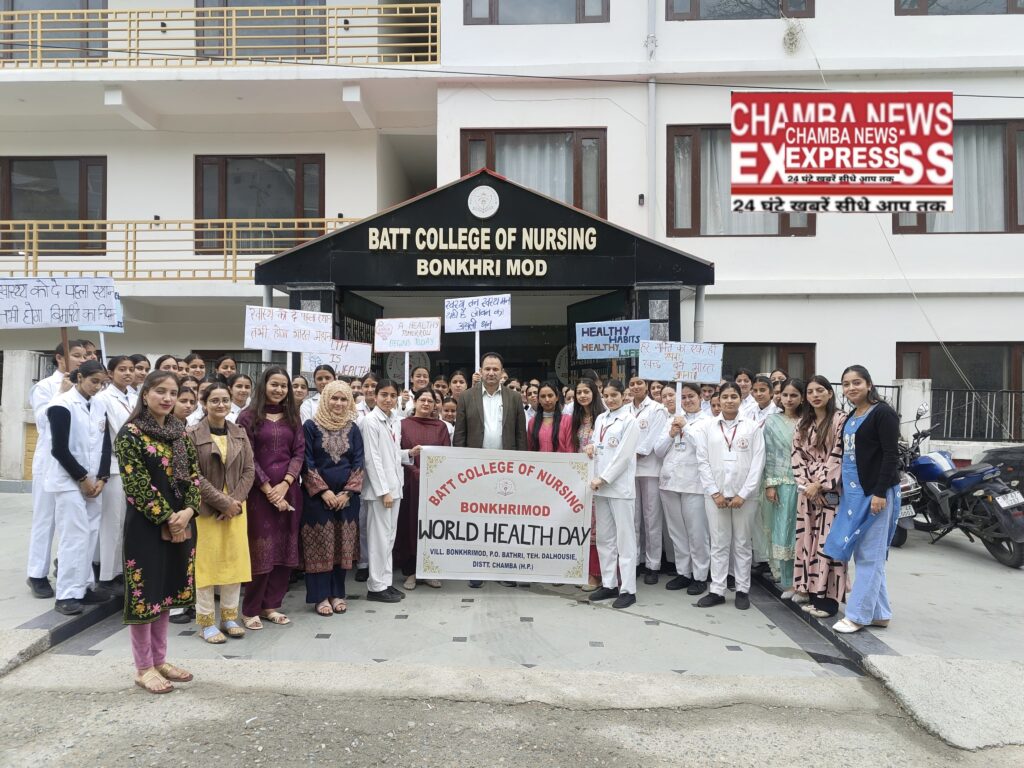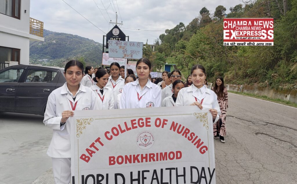 विश्व स्वास्थ्य दिवस के अवसर पर बोंखरी मोड़ स्थित बट्ट कॉलेज ऑफ नर्सिंग की प्रशिक्षुओं द्वारा एक प्रभावशाली जागरूकता रैली का आयोजन किया गया। रैली का मुख्य उद्देश्य आमजन को स्वास्थ्य के प्रति जागरूक करना तथा उन्हें स्वस्थ जीवनशैली अपनाने के लिए प्रेरित करना रहा।रैली से पूर्व आयोजित कार्यक्रम में कॉलेज के चेयरमैन परवेज अली बट्ट ने प्रशिक्षुओं को संबोधित करते हुए उत्तम स्वास्थ्य के महत्व पर विस्तार से प्रकाश डाला। उन्होंने कहा कि बदलती जीवनशैली के कारण आज अनेक बीमारियां तेजी से फैल रही हैं, ऐसे में प्रत्येक व्यक्ति को अपने स्वास्थ्य के प्रति सजग रहना अत्यंत आवश्यक है।