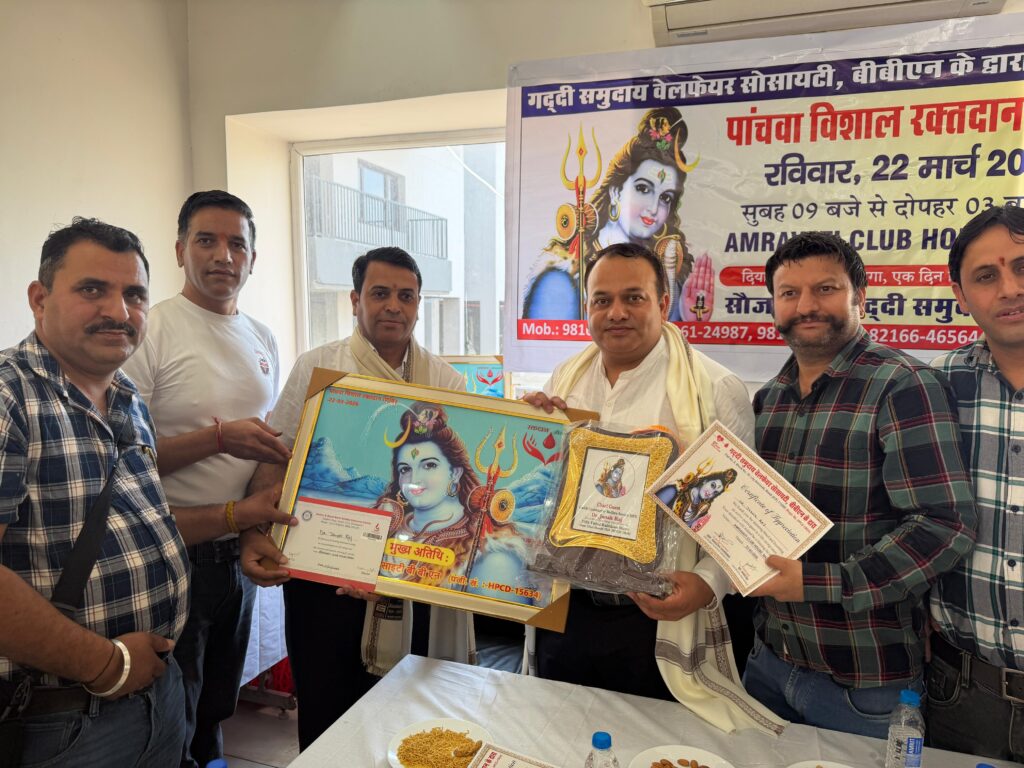 बद्दी में गद्दी समुदाय द्वारा भव्य रक्तदान शिविर आयोजित, विधायक जनक राज ने 50वीं बार किया रक्तदान