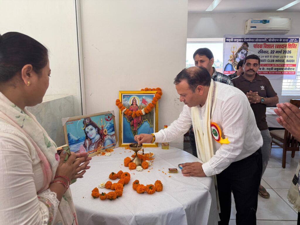 बद्दी/ सोलन 22 मार्च चंबा न्यूज़ एक्सप्रेस (ब्यूरो)हिमाचल प्रदेश के प्रमुख औद्योगिक नगर बद्दी में आज गद्दी समुदाय वेलफेयर सोसाइटी बीबीएन के तत्वावधान में अमरावती क्लब हाउस बद्दी में भव्य रक्तदान शिविर का आयोजन किया गया। इस सामाजिक पहल में क्षेत्र के लोगों ने उत्साहपूर्वक भाग लेकर मानव सेवा का संदेश दिया।